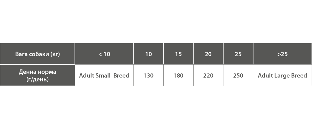 | Вікова група | Для дорослих тварин |